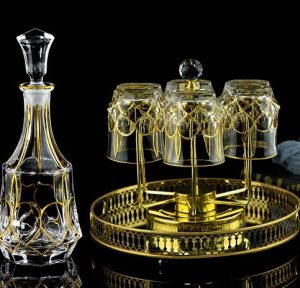 Abstract Whiskey Glasses Set of 6 with Decanter